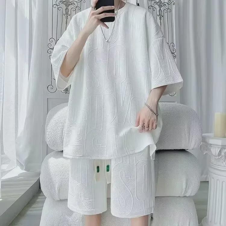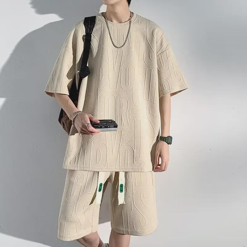 Модный летний жаккардовый костюм для мальчиков: Комплект из футболки и шорт свободного кроя