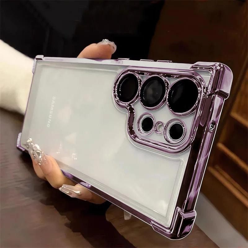 Роскошный противоударный прозрачный чехол с покрытием для Samsung Galaxy S25 Ultra S24 S23 S22Plus S21 S20, жесткий акриловый гибридный защитный чехол-бампер — купить товар онлайн с бесплатной доставкой по всему миру!