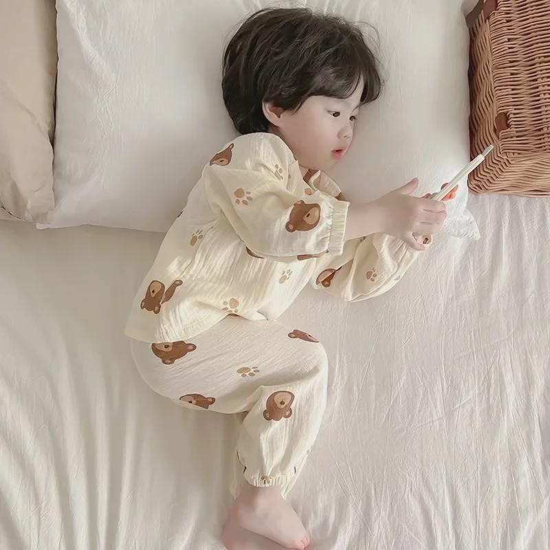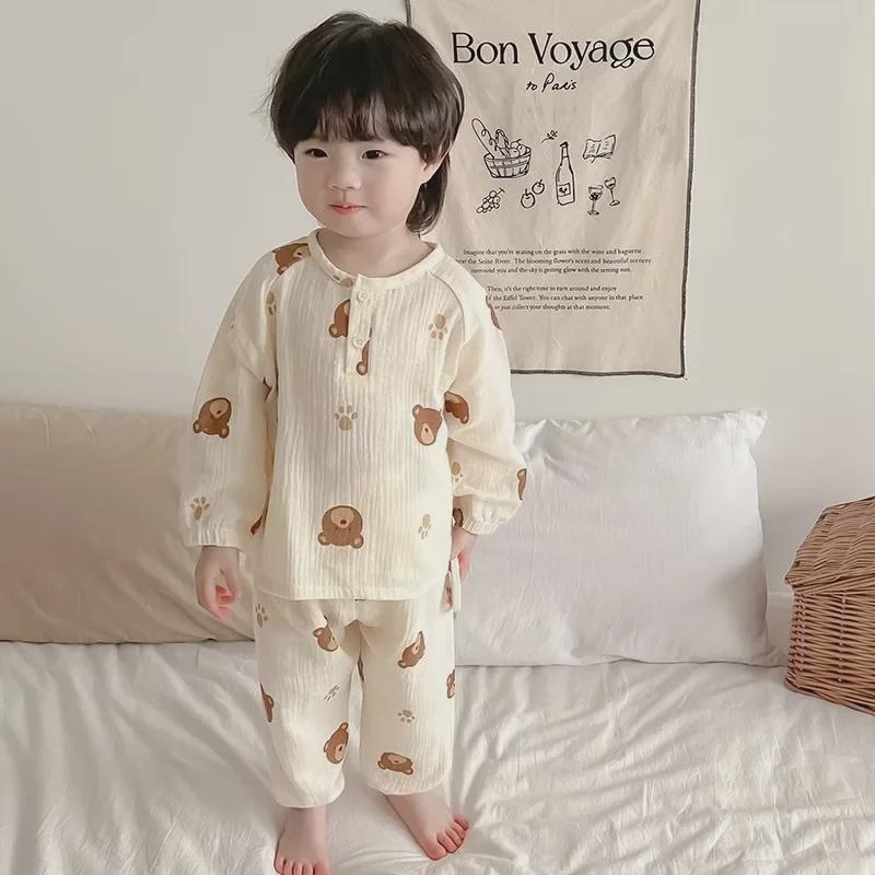 Пижама для малышей Bear Cotton - с длинными рукавами, дышащий марлевый костюм для весны и осени