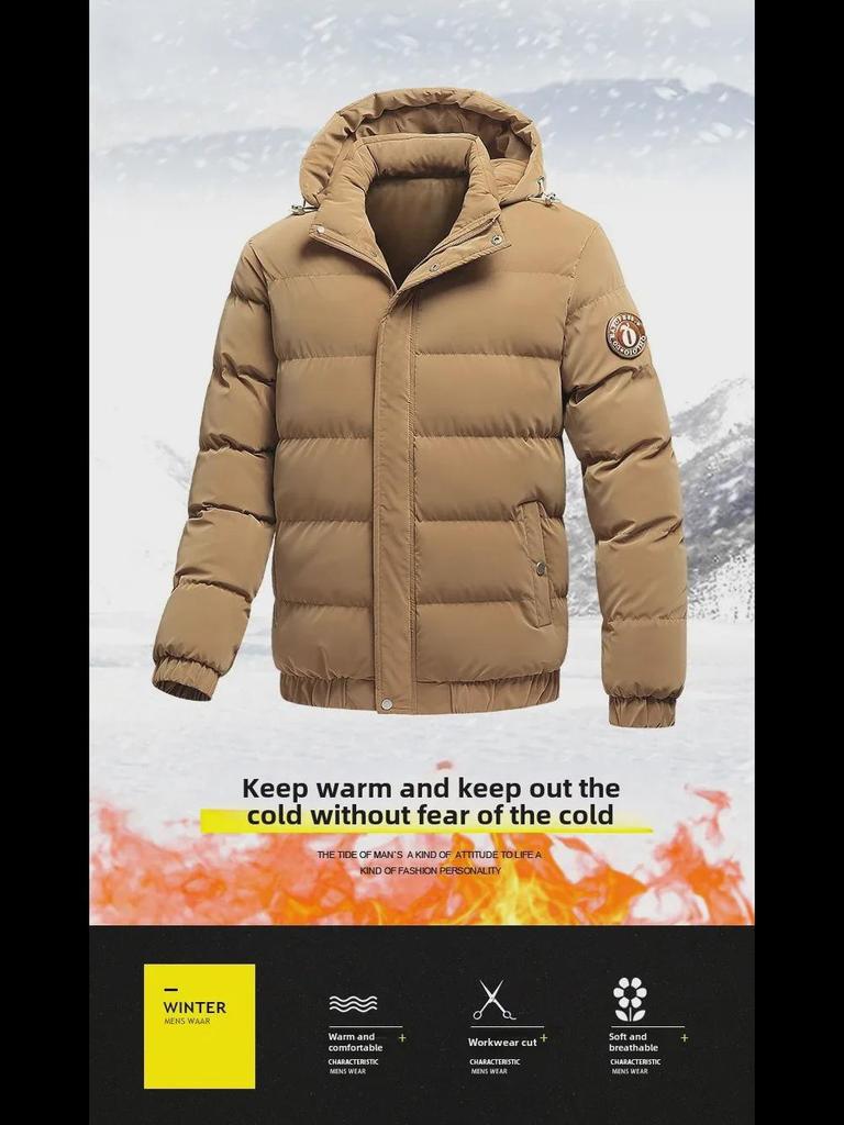 Мужское модное зимнее хлопковое пальто с капюшоном — толстое, теплое и свободного кроя