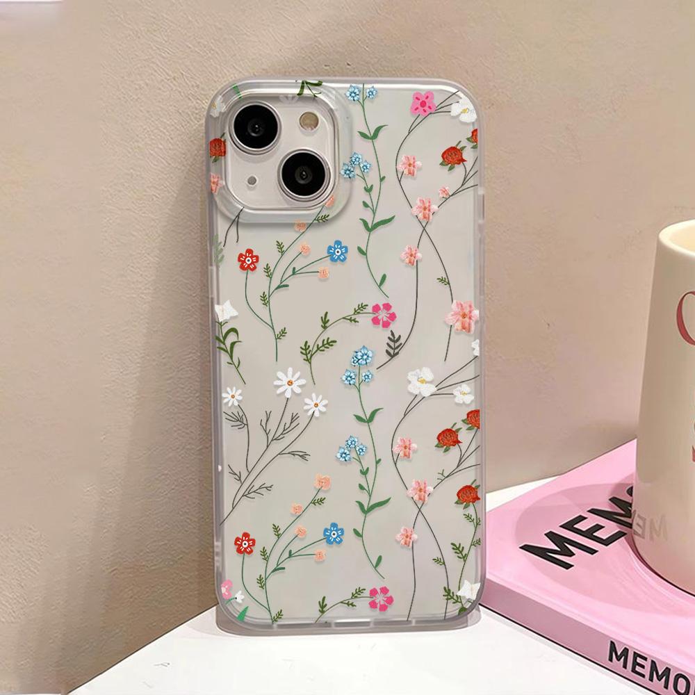 Чехол для телефона Flower для iPhone 14 Pro, чехол для iPhone 13, 11, 12, 16, 15, Pro Max Plus, 12 Mini, противоударный матовый прозрачный эстетический чехол