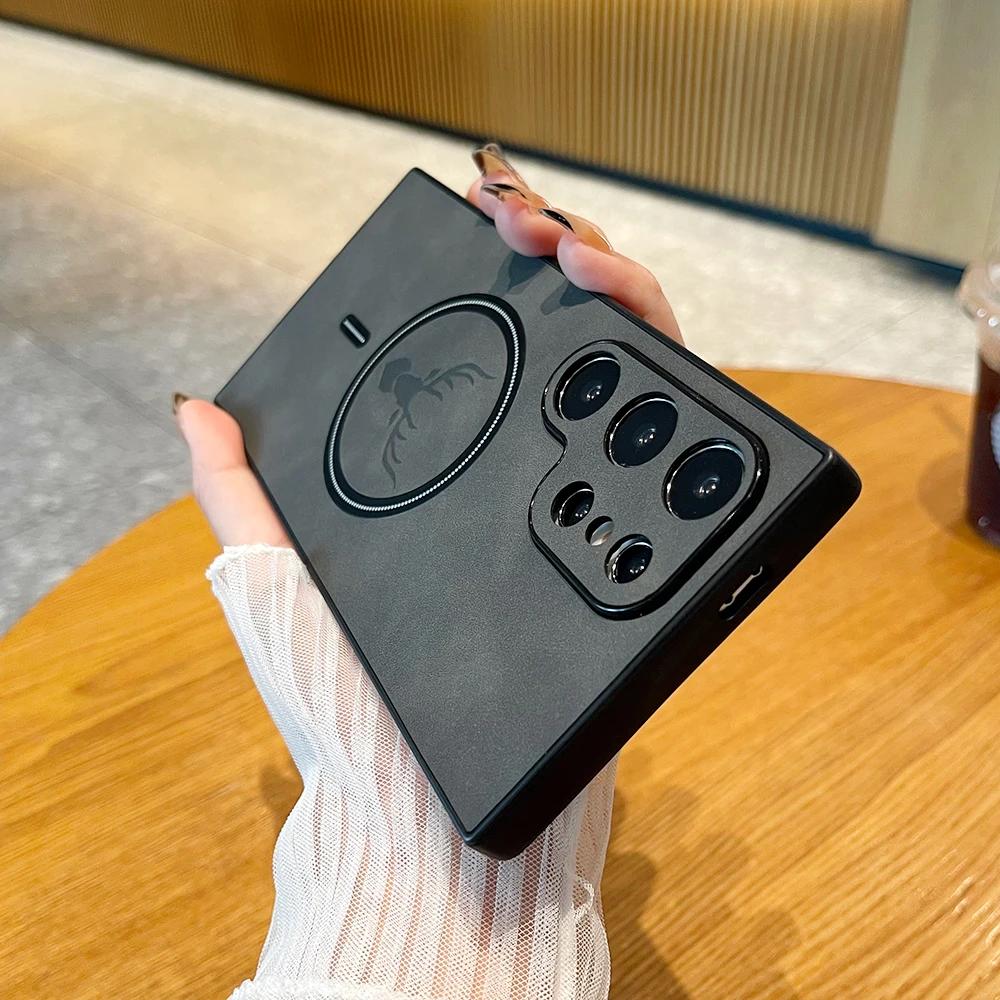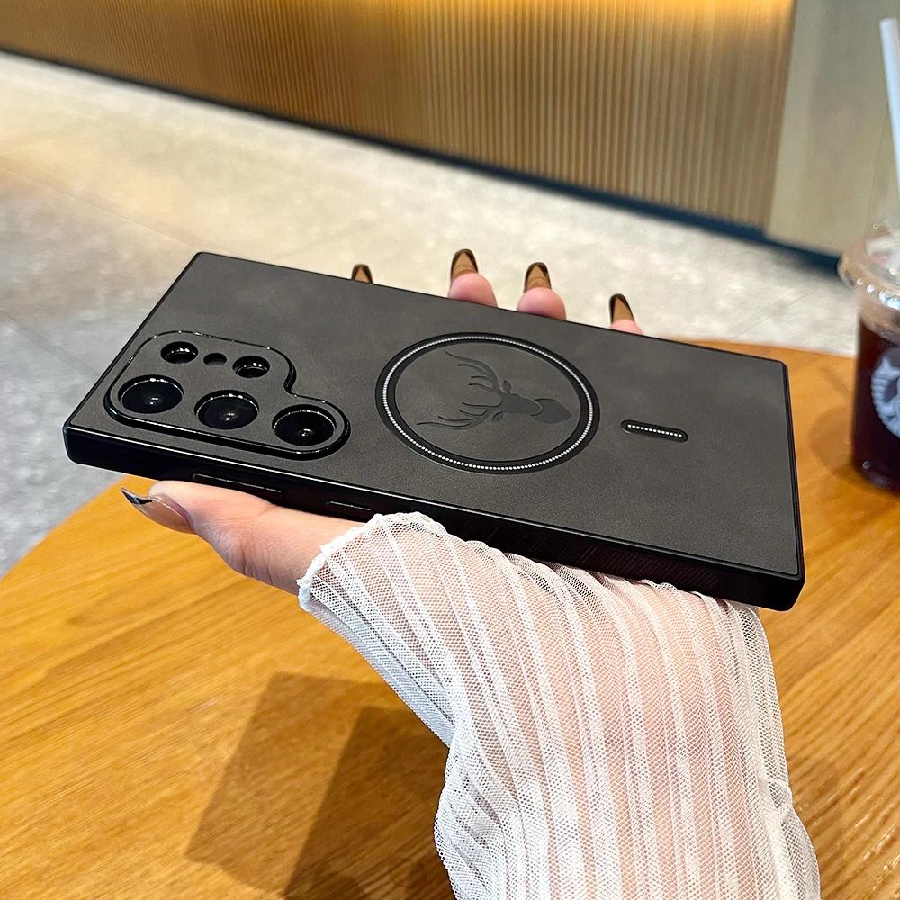 Роскошный кожаный чехол для телефона с магнитной беспроводной зарядкой для Samsung Galaxy S25 Ultra, чехол с изображением лося, противоударная накладка для телефона