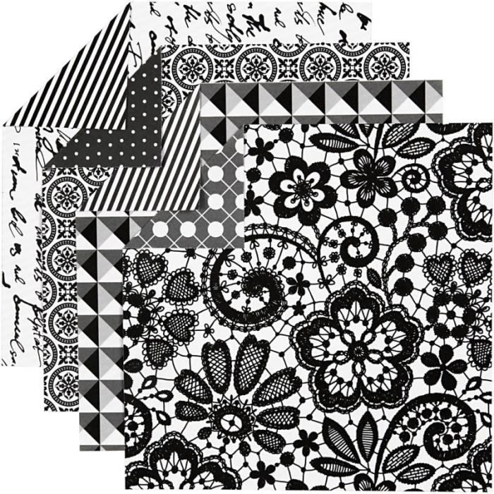 Papier origami - Noir et blanc - 10 x 10 cm - 50 feuilles