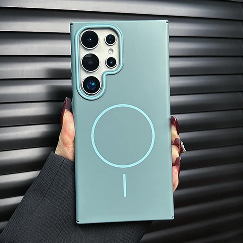 Для Magsafe Magnetic Wireless Charge Case для Samsung Galaxy S25 Plus S24 S23 S22 S21 Ultra Note 20 Матовый жесткий PC простой чехол