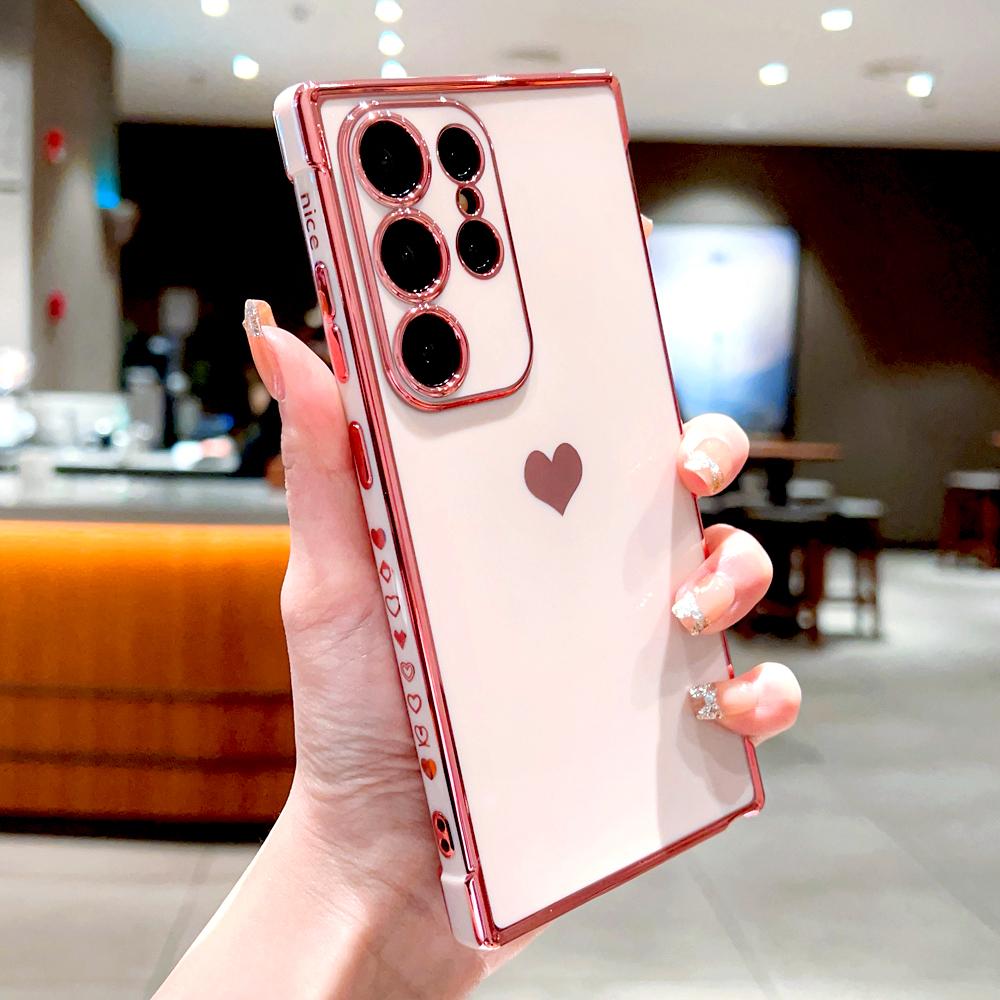 Роскошный мягкий силиконовый чехол с покрытием для Samsung Galaxy S25 S24 S23 S22 S21 Ultra Plus FE A52 A53 A54 A55 S 25 24 Love Heart Cover