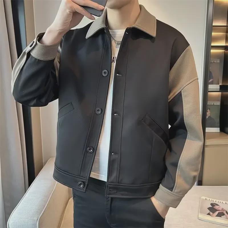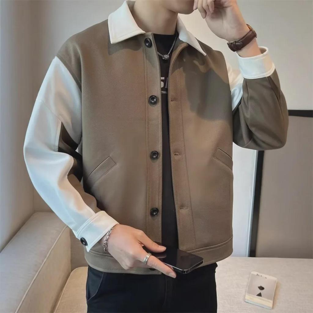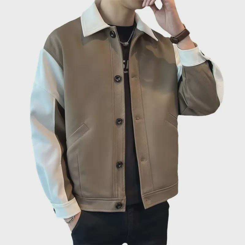 Белая мужская мотоциклетная куртка в корейском стиле с контрастной строчкой — повседневный американский стиль с дизайном лацканов