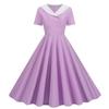 Летнее ретро-платье 2023 года с короткими рукавами и однотонным принтом