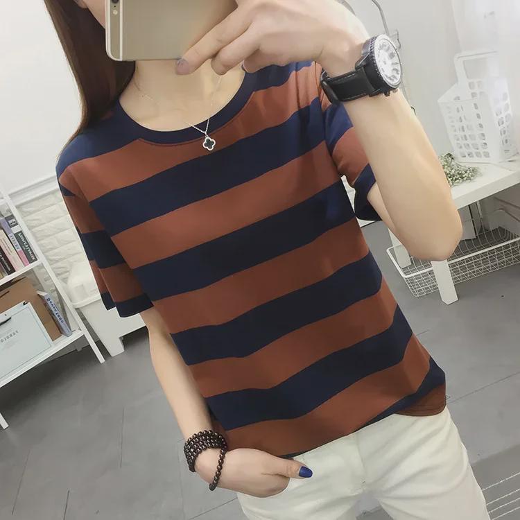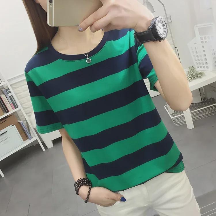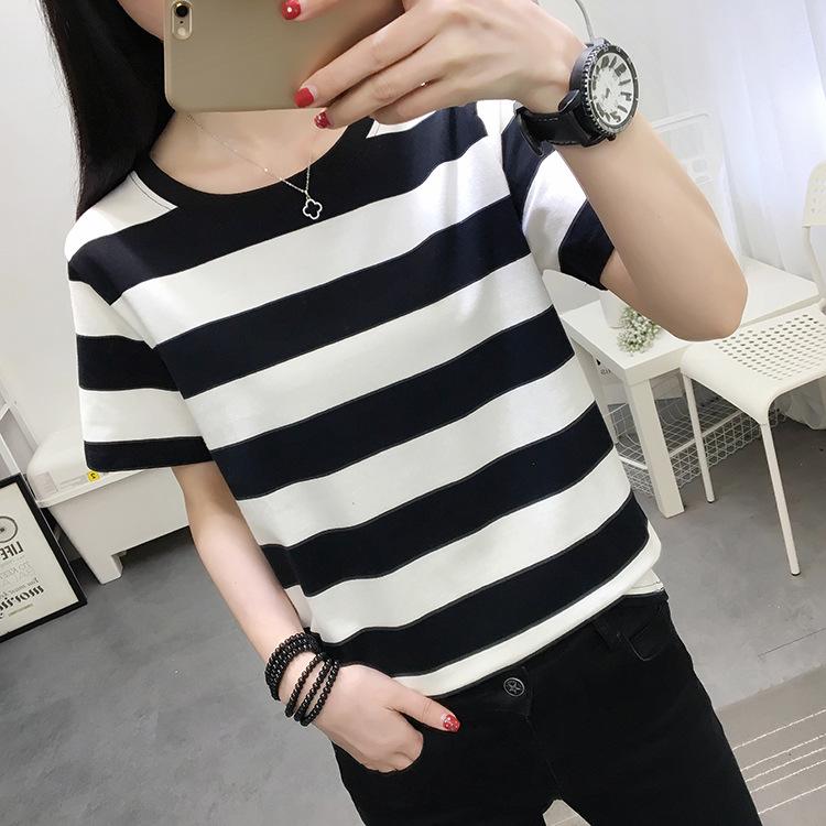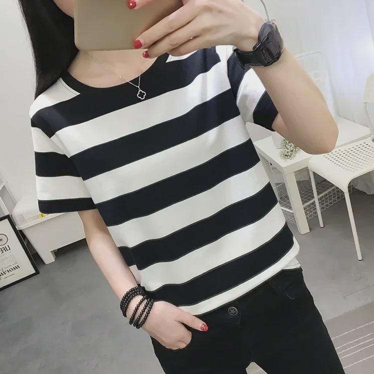 2024 Плюс Размер Женская Свободная Футболка С Коротким Рукавом Черно-Белая Полосатая Хлопковая Футболка