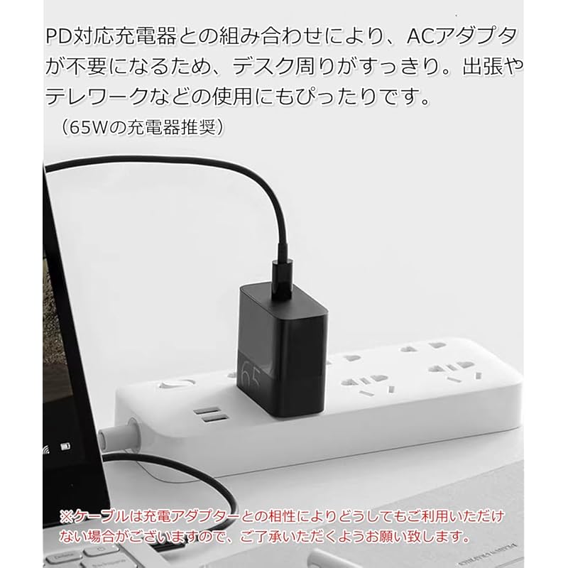 Пожалуйста, используйте зарядное устройство PD с выходной мощностью, равной или превышающей мощность, необходимую для вашего ноутбука. (Рекомендуется зарядное устройство мощностью 65 Вт).Кроме того, могут быть случаи, когда вы не сможете использовать зарядный кабель из-за его совместимости с зарядным адаптером, поэтому в этом случае, пожалуйста, смело возвращайте его.