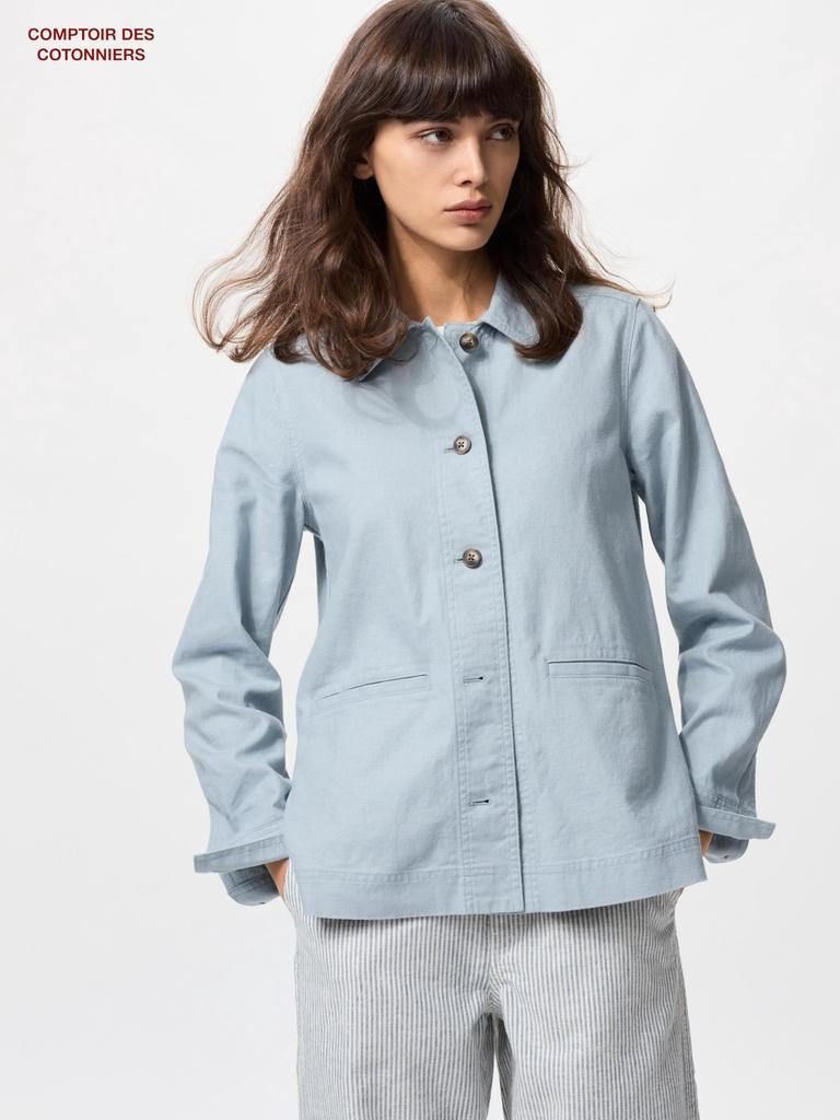 Почувствуйте шикарную элегантность с этой курткой UNIQLO из японского льна и хлопка.. Эта универсальная вещь создана для комфорта и свободного кроя, гарантируя, что вы будете выглядеть стильно и непринужденно.. Изготовленная из экологически чистых высококачественных материалов, эта куртка воплощает в себе вневременную философию дизайна Comptoir des Cotonniers.. В состав входит 51% льна и 49% хлопка для основной части и 100% хлопка для кармана, что обеспечивает как стиль, так и практичность.