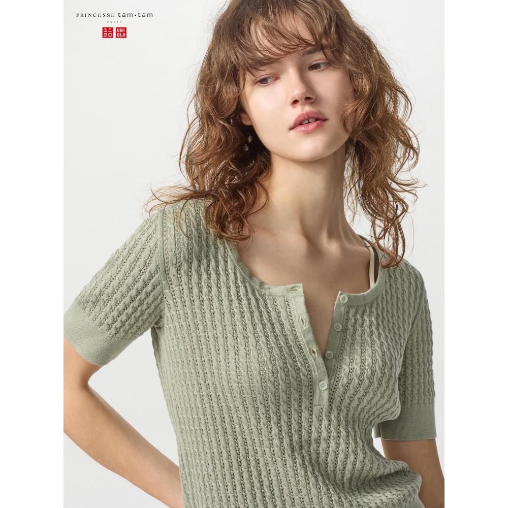 Uniqlo Японский вязаный свитер с воротником-хвостом и коротким рукавом — купить товар онлайн с бесплатной доставкой до всему миру!