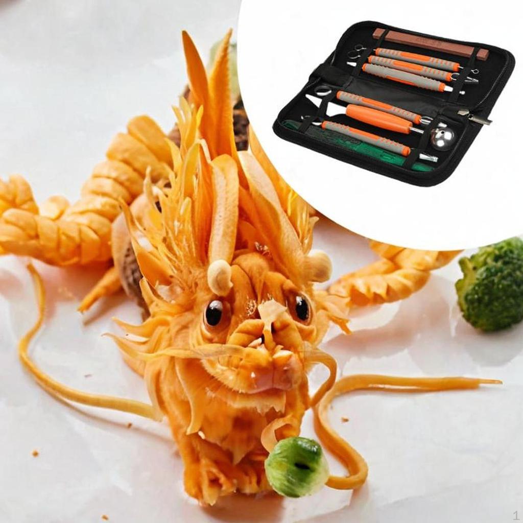 - 【Фруктовый инструмент двойного назначения】: В набор входит двухсторонний инструмент из нержавеющей стали, одна из которых предназначена для декоративной резьбы, а другая — для нарезки шариков из дыни, что позволяет без труда создавать красивые фруктовые тарелки.