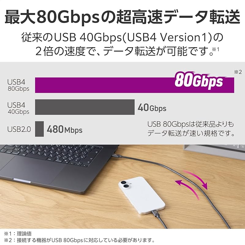 Кабель ELECOM USB-C длиной 1 м, USB4, 60 Вт, высокоскоростная передача данных, совместимость с USB PD, до 80 Гбит/с, 8K/60 Гц [совместимость с Thunderbolt 5/4 3, USB3.x 2.0] [USB-IF