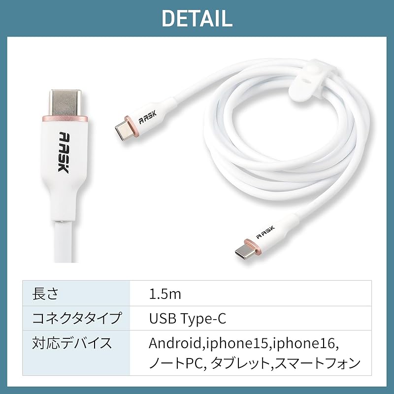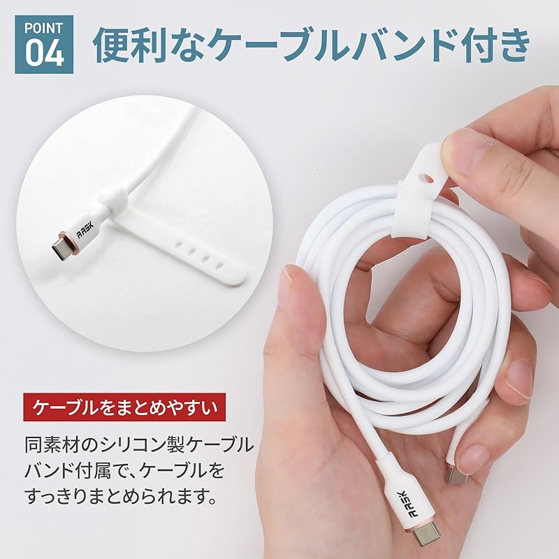 Кабель изготовлен из белого силиконового материала, обладающего превосходной гибкостью и прочностью, а также дополнительно отформован с использованием материала TPE. Такая конструкция делает его не спутывающимся и устойчивым к износу даже после длительного использования. Он гладкий на ощупь и удобный для повседневного использования. Он также поставляется с силиконовой кабельной лентой, изготовленной из того же материала, которая поможет вам легко организовать кабели.