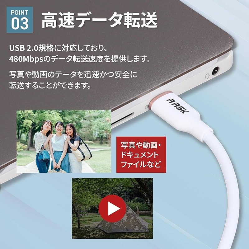 Он поддерживает стандарт USB 2.0 и обеспечивает скорость передачи данных 480 Мбит/с. Это позволяет не только заряжать, но и передавать данные, такие как фотографии, видео, документы и т. д.. быстро и безопасно. Конструкция простая, но практичная.