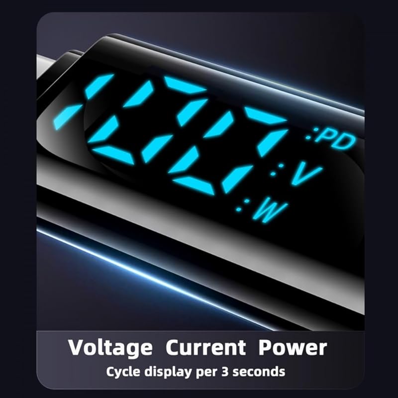 4) С дисплеем напряжения и тока: Светодиодный индикатор показывает процесс зарядки. Адаптер со светодиодным цифровым дисплеем, который может отображать напряжение, ток и мощность зарядки в режиме реального времени. Визуальный дизайн, который позволяет вам узнавать скорость зарядки в режиме реального времени и контролировать состояние вашего устройства.