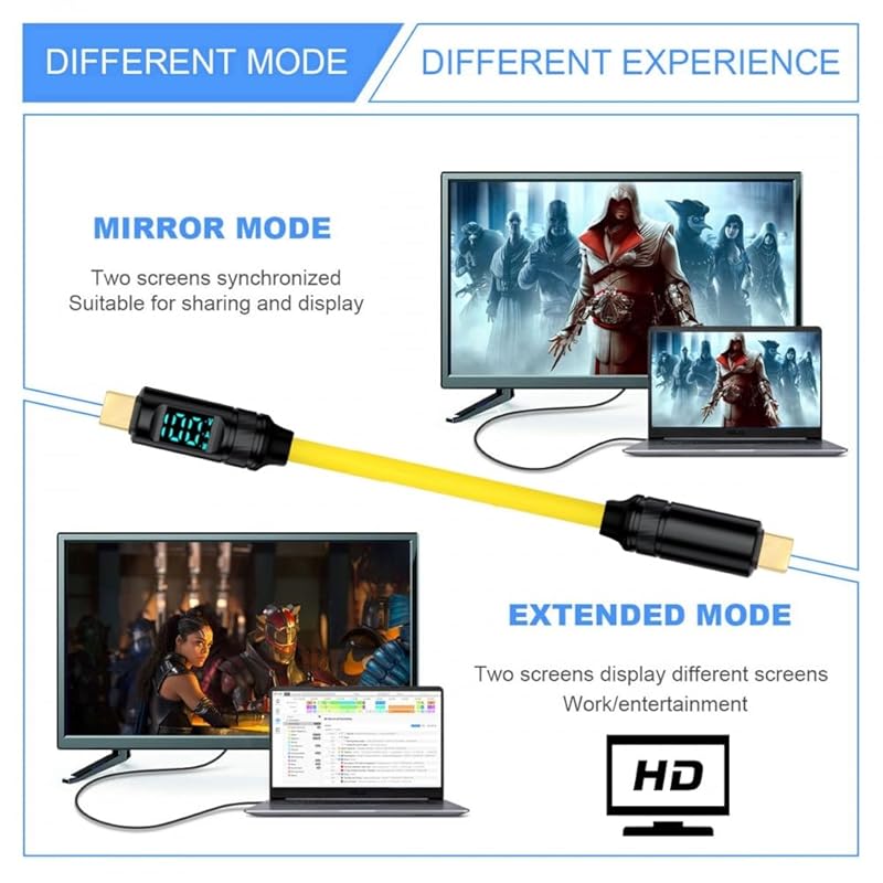 1) Видеовыход 8K/5K Ultra HD: Этот кабель USB4 позволяет подключать устройства с портами USB4 или Thunderbolt3/4 к монитору USB-C. Поддерживает разрешение видео до 8K при 60 Гц, 5K при 60 Гц или 4K при 60 Гц на внешних дисплеях.(Убедитесь, что порт Type-C вашего монитора поддерживает альтернативный режим DP для видео.)