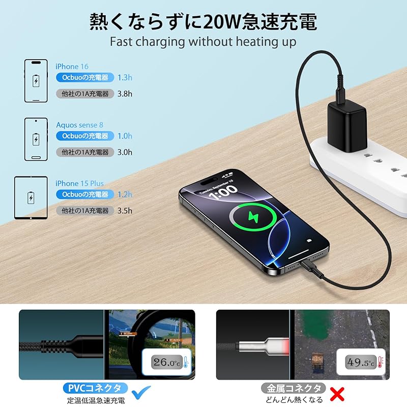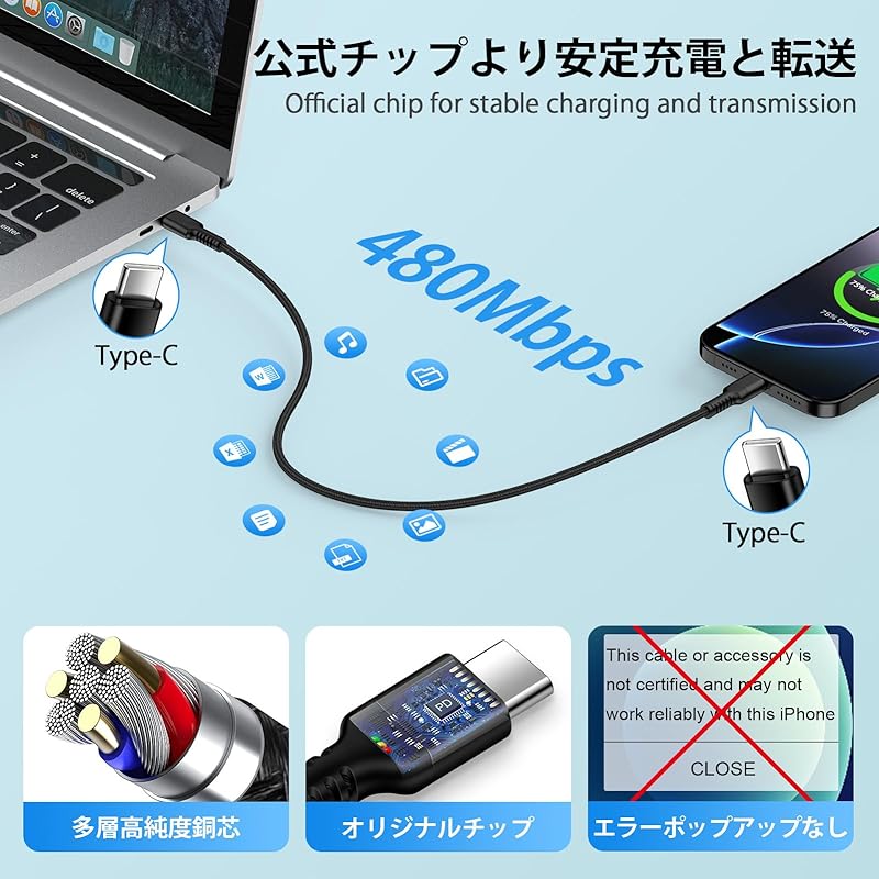 🤲[Безопасный шнур для iPhone] Соответствует японскому закону о безопасности электроприборов и материалов для повышения безопасности и надежности, внутри находится интеллектуальный чип, который может эффективно предотвращать перегрев и перегрузку по току, а также имеет несколько функций защиты, таких как защита от короткого замыкания, и поддерживает высокоскоростные устройства. Наслаждайтесь передачей данных, синхронизацией и зарядкой с уверенностью. [Гарантийный срок 12 месяцев]