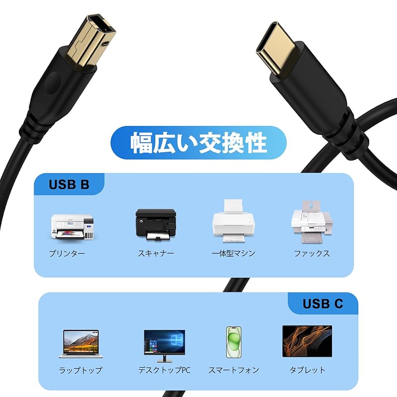 Кабель типа C - типа B: Для подключения устройств с портами USB2.0 B (принтеры/сканеры/Midi-клавиатуры и т. д.) к компьютерам/ноутбукам с портами USB C. Нет необходимости устанавливать драйвер, просто подключите его, и он будет распознан.
