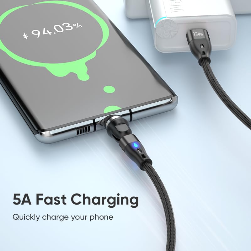 Магнитный кабель свободного вращения на 360° и 180°: Магнитный зарядный кабель 360 может свободно вращаться на 360° во время зарядки, а также может вращаться в пределах 180° во время зарядки. Когда вам нужно поиграть в игры или посмотреть телепередачи или фильмы, его можно повернуть в форме буквы L под прямым углом, что очень удобно.