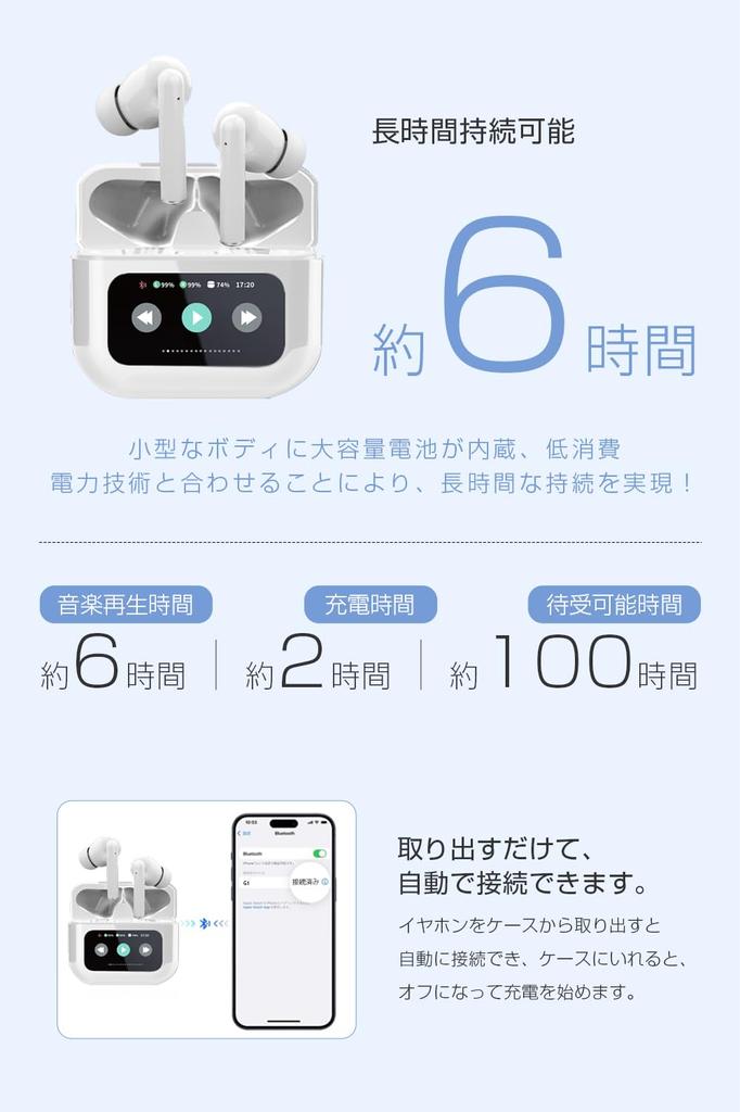Полностью беспроводные наушники Bluetooth 5.4 с сенсорным дисплеем, ЖК-корпусом, функцией ANC, встроенным микрофоном, HiFi, высокой точностью воспроизведения, функцией громкой связи, раздельным расположением левого и правого наушника, одно-/бинауральным сенсорным управлением, удобными для ношения, автоматическим сопряжением, совместимы с iOS Android, в комплект входит руководство на японском языке (белый)