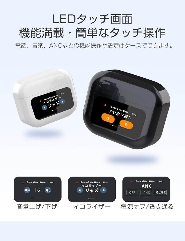 ♪ [Оснащен 1,47-дюймовым сенсорным дисплеем в корпусе] Представляем новейшую модель беспроводных наушников с сенсорным дисплеем. Многими функциями и настройками, которыми раньше можно было управлять только с помощью приложения для смартфона или наушников, теперь можно управлять с помощью сенсорного дисплея чехла.. Вы можете управлять воспроизведением, паузой, громкостью, шумоподавлением ANC/режимом захвата внешнего звука, эквалайзером и рядом других функций и настроек. (поиск наушников, ответ/отклонение вызовов, простые функции уведомлений и т. д.).