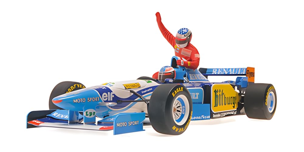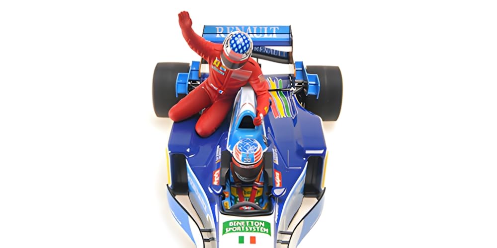В комплект входит фигурка Minichamps Benetton Renault B195 F1 1995 Canadian GP Schumacher Ride On Jean Alesi в масштабе 1/18 M.