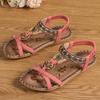 Женские босоножки в стиле бохо с цветочным принтом и стразами большого размера. Пляжные босоножки с открытым носком.