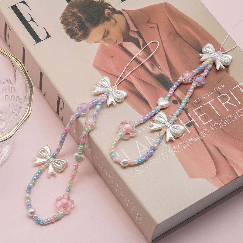 1 шт. цветная цепочка-бант для мобильного телефона, женская, для девочек, бисерный телефонный шнурок для защиты от потери ювелирных изделий для мобильного телефона
