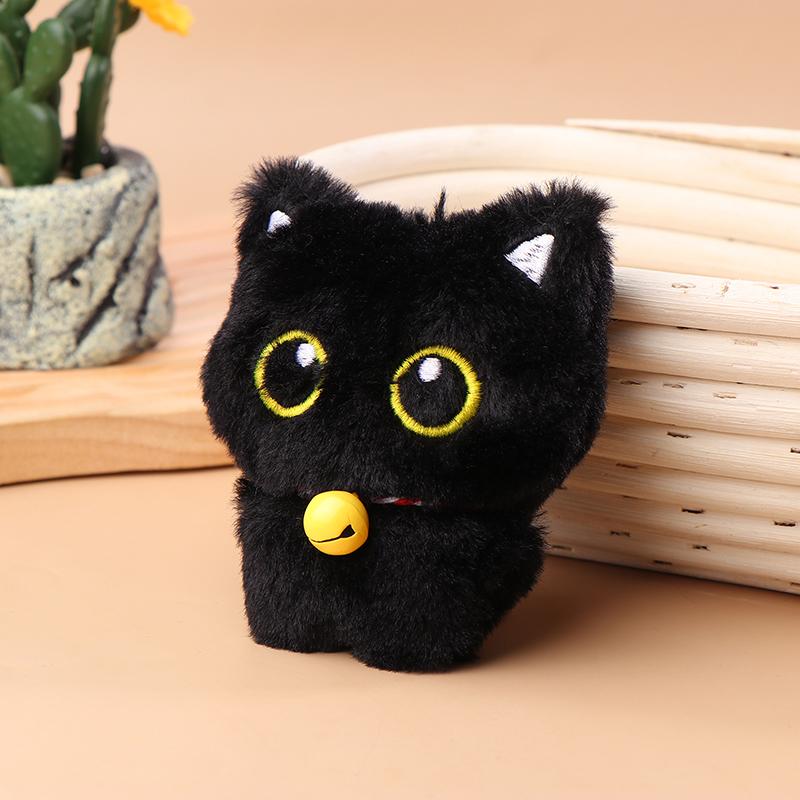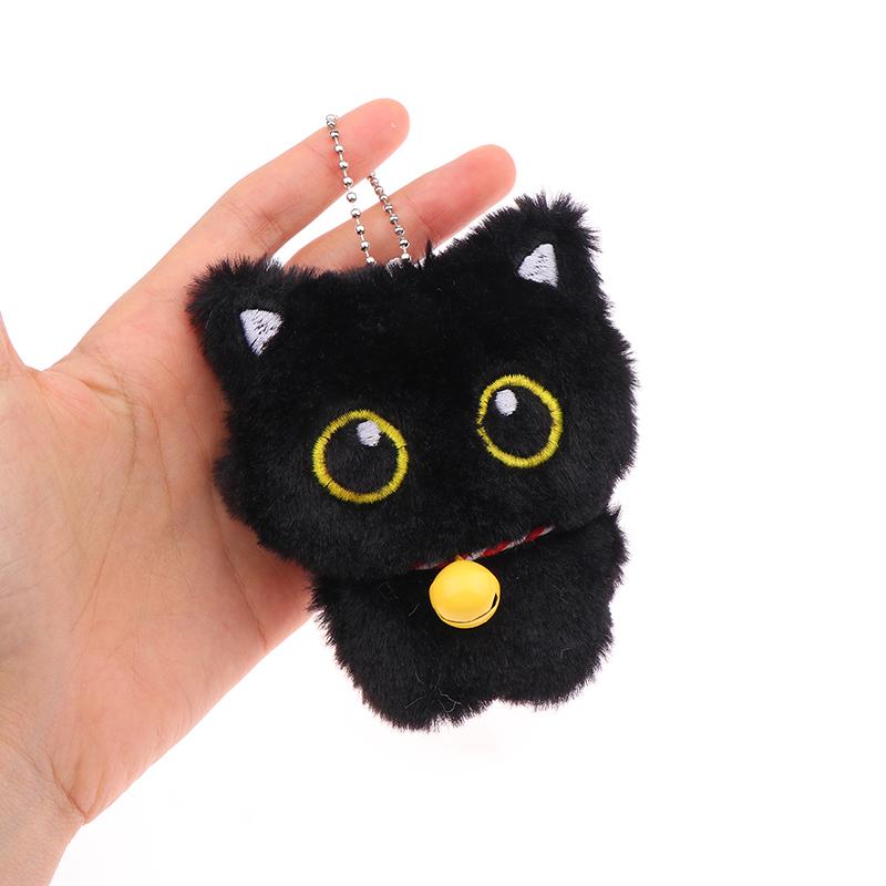 1 шт. мультяшный котенок мягкая кукла кулон милый колокольчик черный кот плюшевая игрушка брелок для ключей автомобильный брелок сумка декор для рюкзака детский подарок