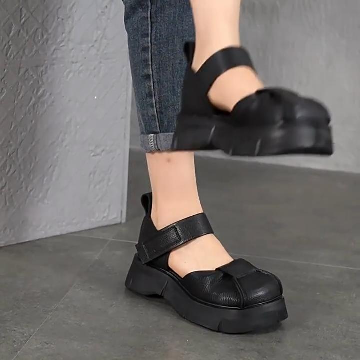 Johnature Retro Lightweight Thick Soled Sandals Genuine Leather Roman Women's Platform Shoes — купить товар онлайн с бесплатной доставкой по всему миру!