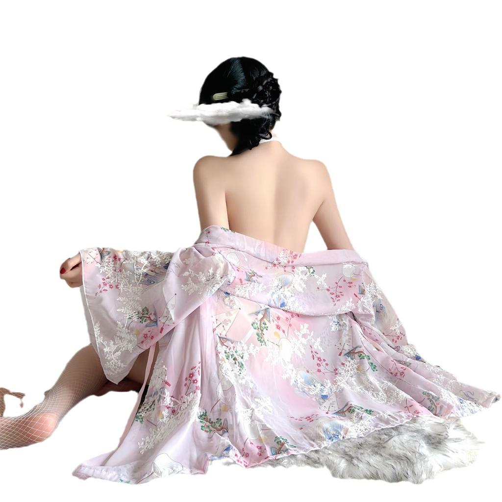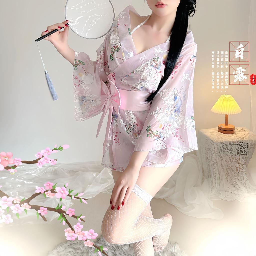 Сексуальное нижнее белье сексуальное горячее чистое похоть женщина античный соблазн кимоно бант пояс полая перспектива пижамный комплект