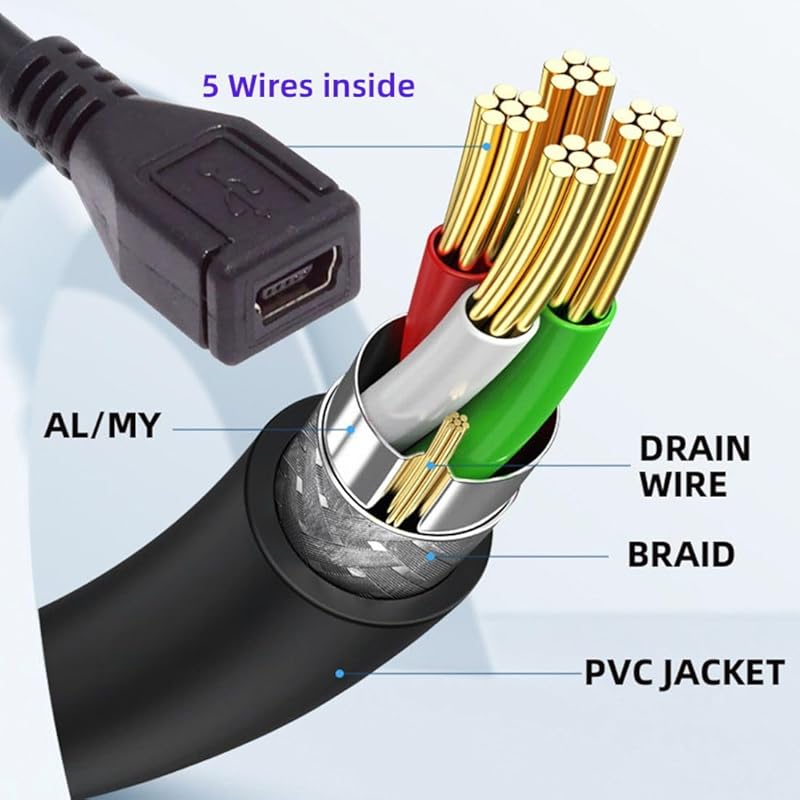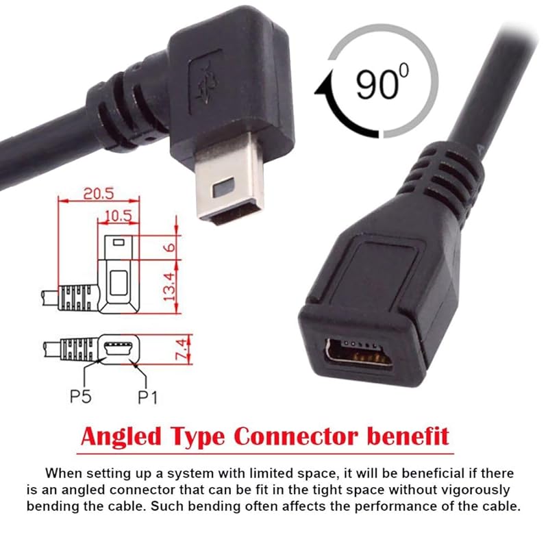 Адаптер кабеля-удлинителя для передачи данных chenyang USB 2.0 Mini 5-контактный разъем «папа-мама» под прямым углом 90 градусов