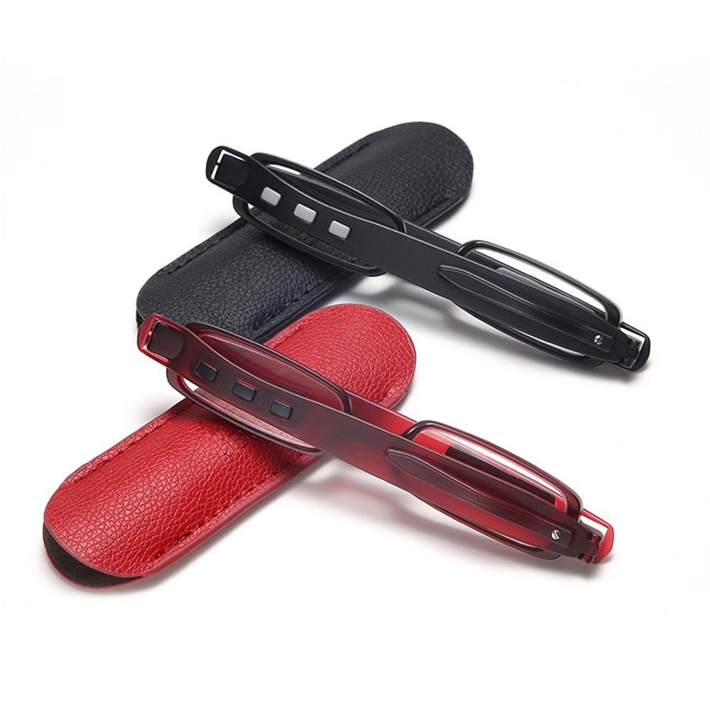 Mini Pocket Pen Clip Readers with Leather Case Portable Folding Reading Glasses Anti Blue Light