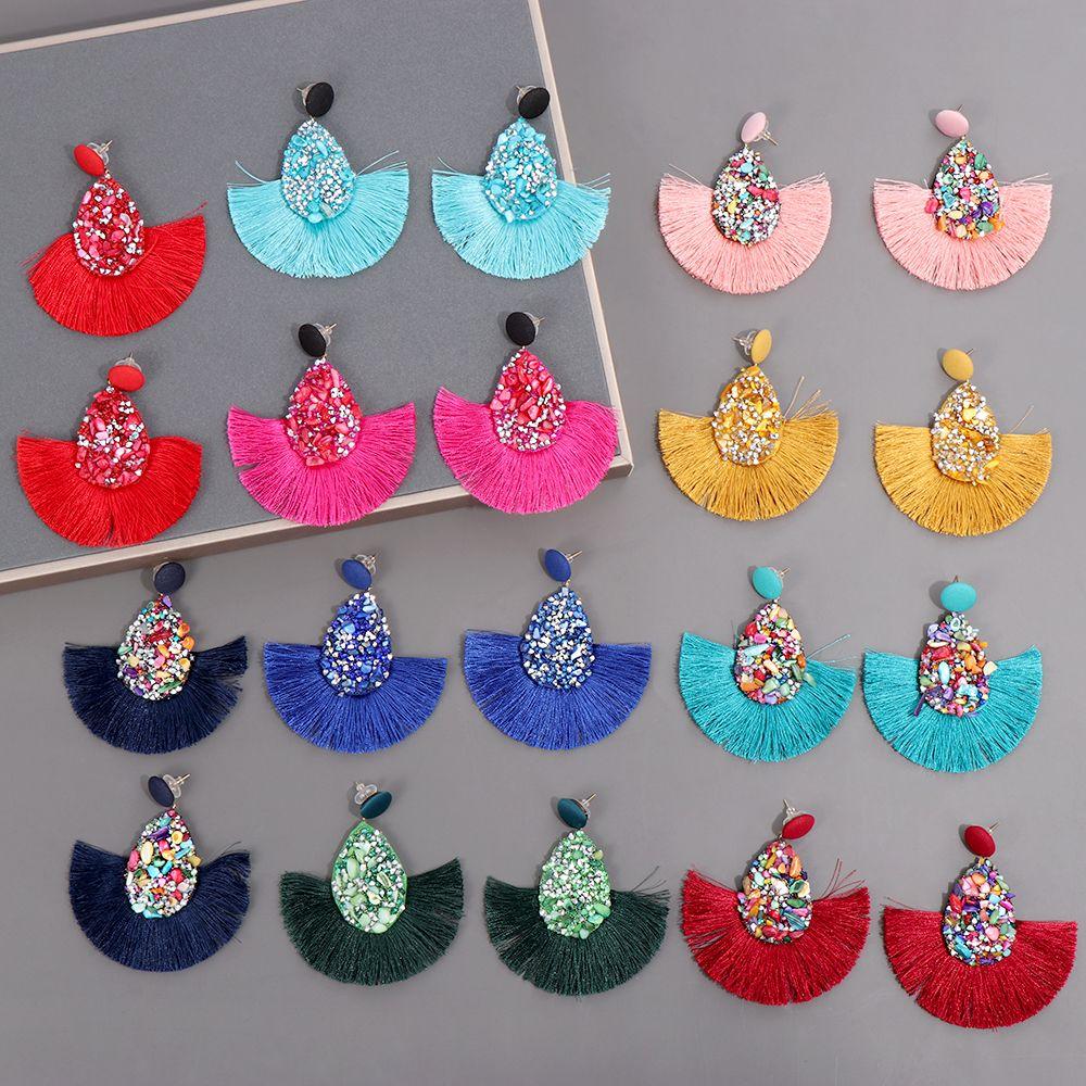 Bohemia Charm Colorful Teardrop Tassel Earrings Crystal Glitter Sequins Dangle Fringe Drop