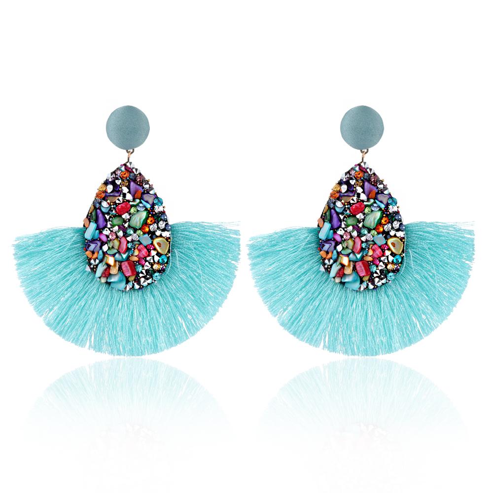 Women Colorful Jewelry Tassel Earrings Teardrop Crystal Glitter Sequins Dangle Fringe Drop