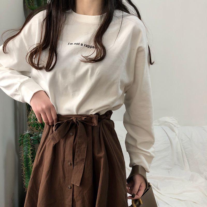 Новая осенняя женская одежда корейская футболка с длинными рукавами женская верхняя корейская свободная тонкая толстовка с буквами женская — купить товар онлайн с бесплатной доставкой по всему миру!