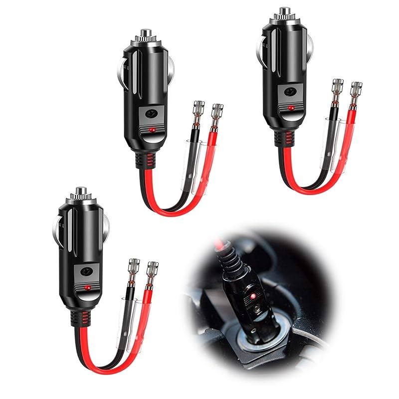 [Простота использования] Штекер прикуривателя автомобиля оснащен кнопкой включения/выключения, прост в использовании. Красный светодиод на прикуривателе загорается во время движения. Красный кабель подключается к положительной клемме устройства, а черный кабель подключается к отрицательной клемме устройства.