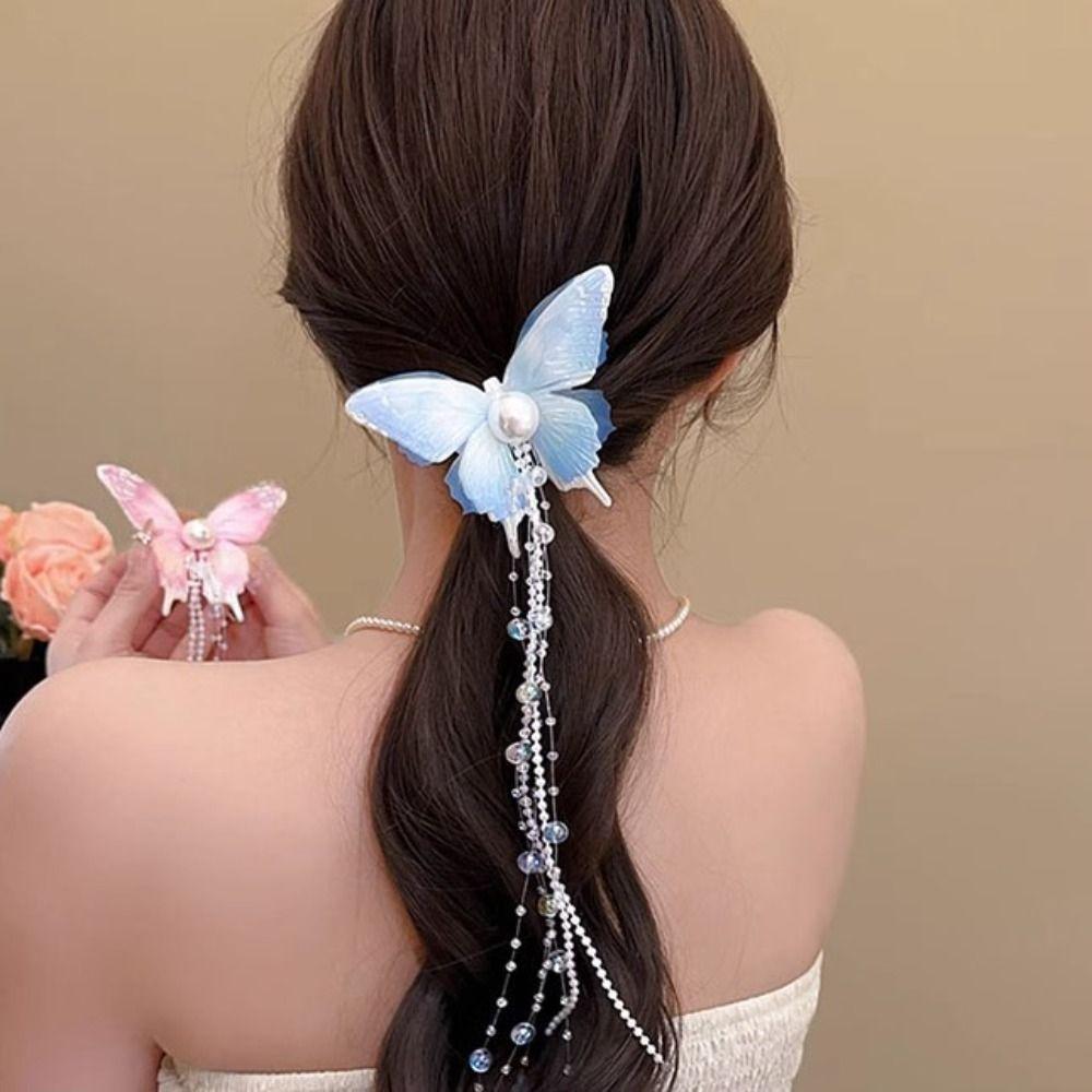 Заколка-бабочка с кисточкой и бусинами, заколка-бабочка для волос, роскошная женская заколка-бабочка