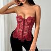 Прозрачный кружевной корсет с пуговицами и цветочным принтом, жилет с подвязками, модный кружевной длинный корсет для женщин