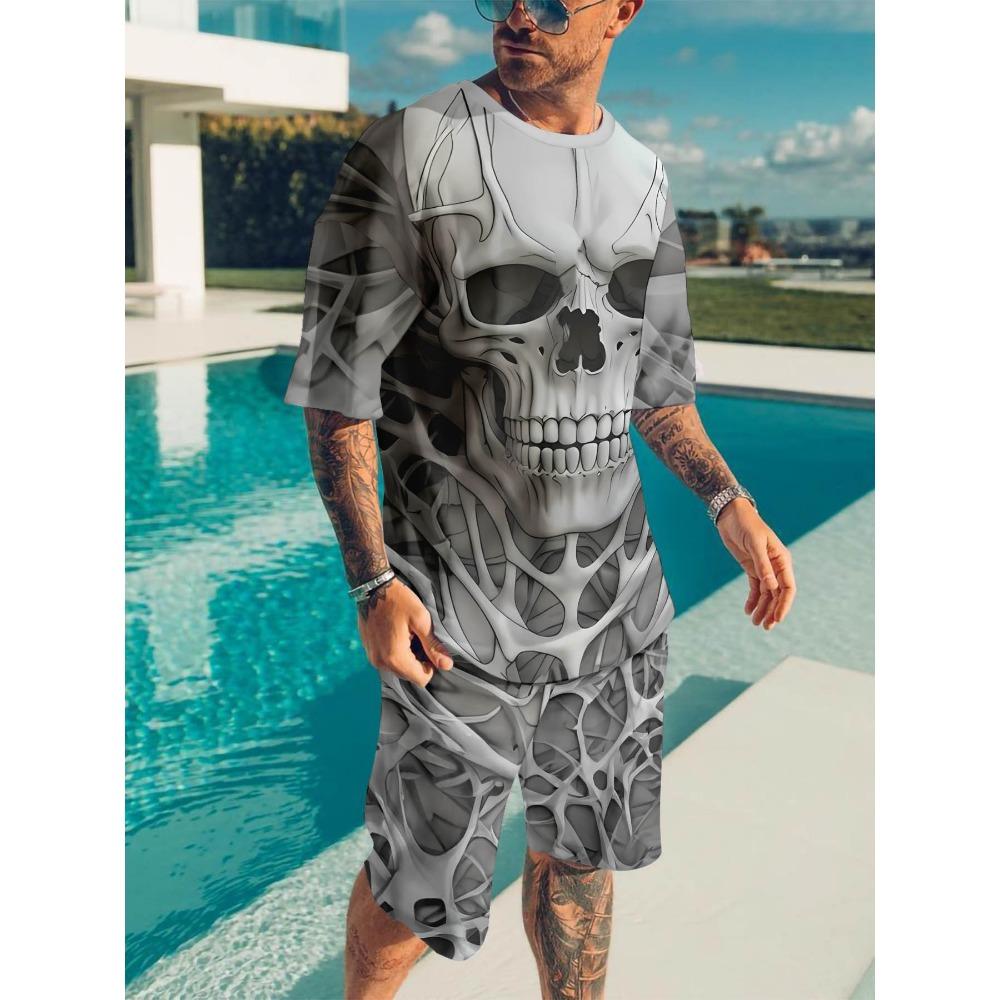 Повседневный спортивный костюм, дышащая повседневная мужская футболка и костюм из пяти брюк, летний костюм с 3D-печатью для взрослых мужчин