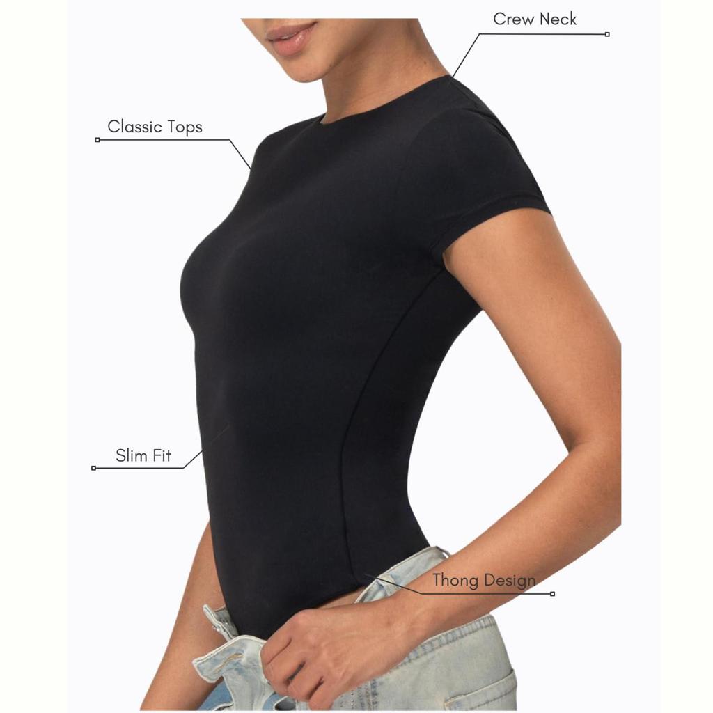 Боди с двойной подкладкой для женщин, топы с круглым вырезом и коротким рукавом для выхода в свет, базовые утягивающие цельные наряды, повседневные сексуальные