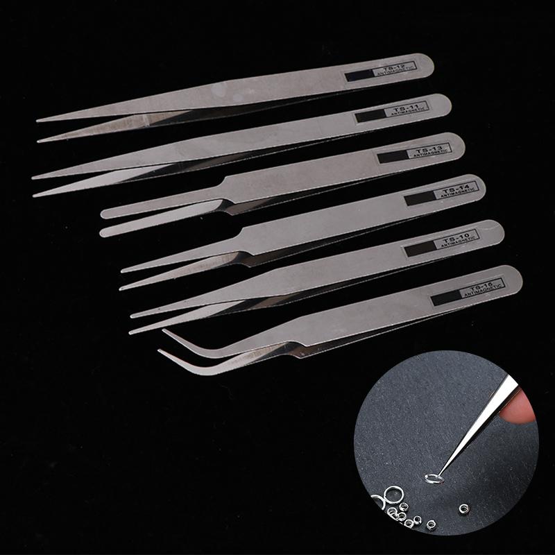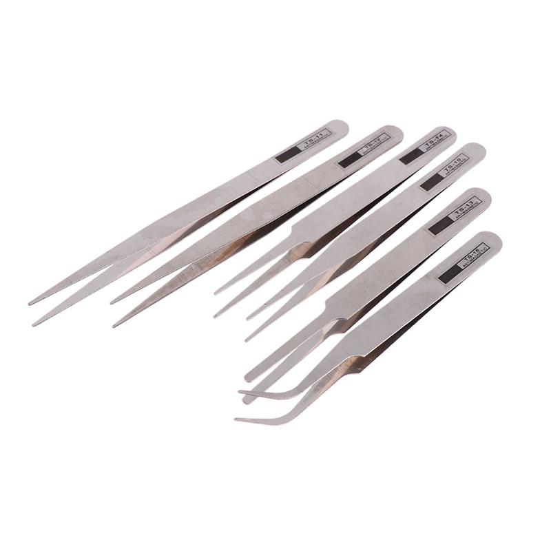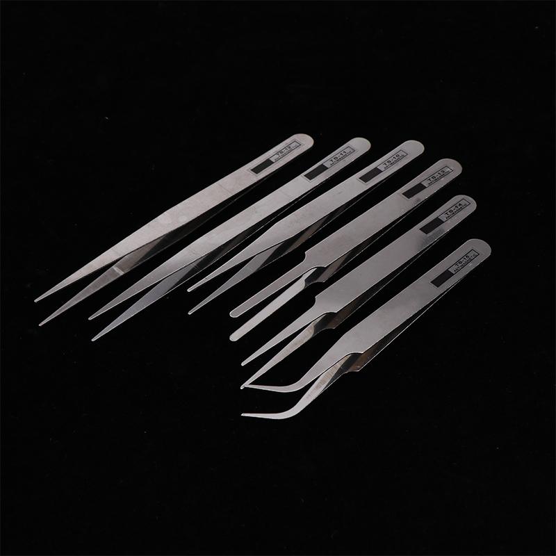 6 шт. Инструмент для ремонта часов Профессиональный нержавеющая сталь Прямой изогнутый пинцет Часовщик Детальный ремонт Инструменты для механического кварца