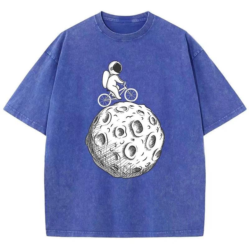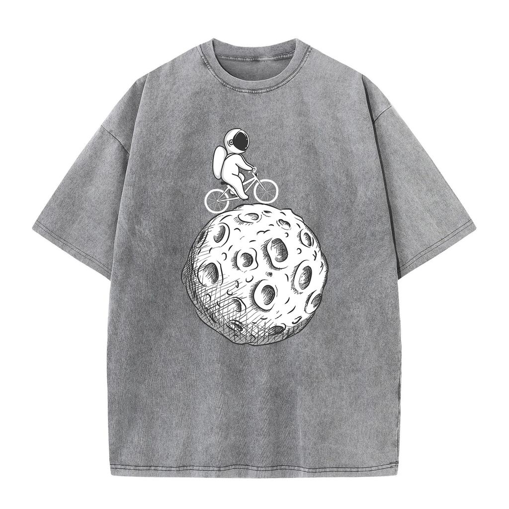 Космонавты на велосипедах с принтом женские стираные короткие футболки дышащие повседневные футболки летние мягкие свободные футболки женские