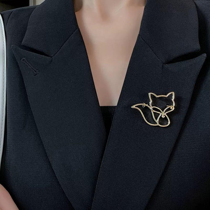 Золотая брошь в виде полой лисы, высококачественная брошь в виде костюма, булавки, корсаж в корейском стиле для женщин, аксессуары для одежды, ювелирные изделия