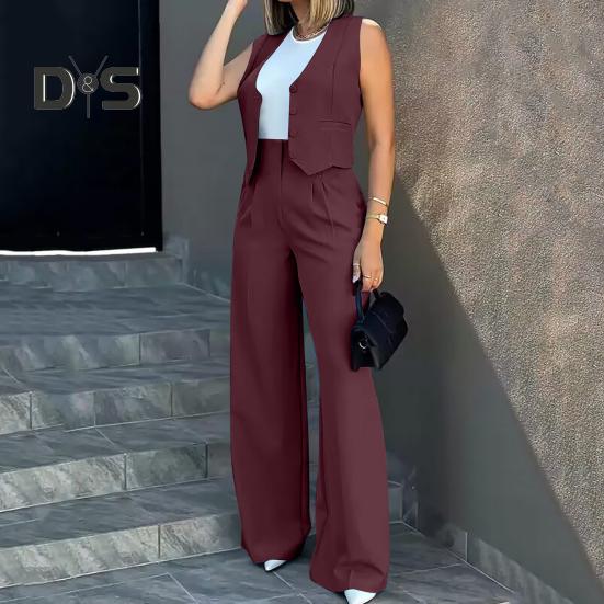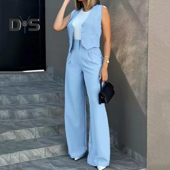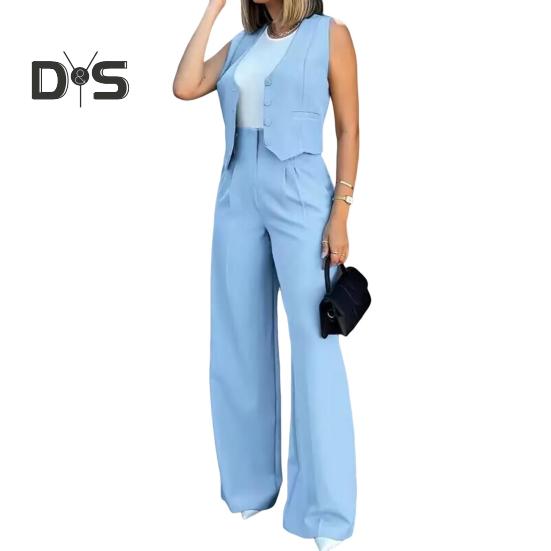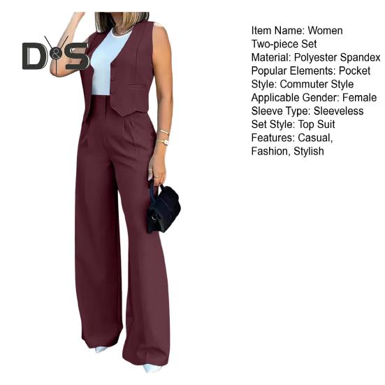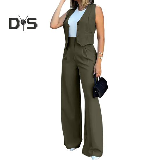 Стильный повседневный ансамбль: Украсьте свой гардероб этим повседневным комплектом из двух предметов для женщин, демонстрирующим шикарный и повседневный стиль.. В комплект входит топ без рукавов в сочетании с широкими брюками, подходящими для разных типов фигур и подчеркивающими ваше неповторимое очарование.