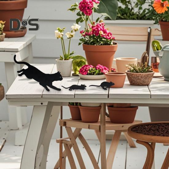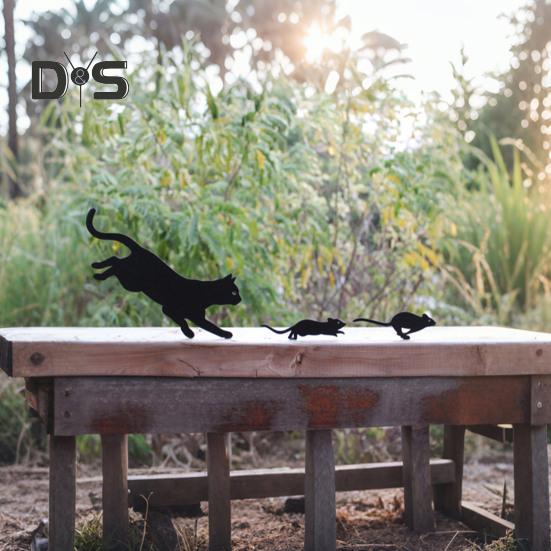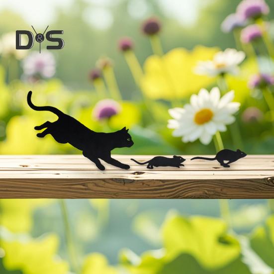 Причудливый дизайн «Кошки и мышки»: Украсьте свой сад очаровательной сценой с кошкой, гоняющейся за мышкой, добавив игривый и живой штрих к вашему уличному декору, который порадует как посетителей, так и прохожих.