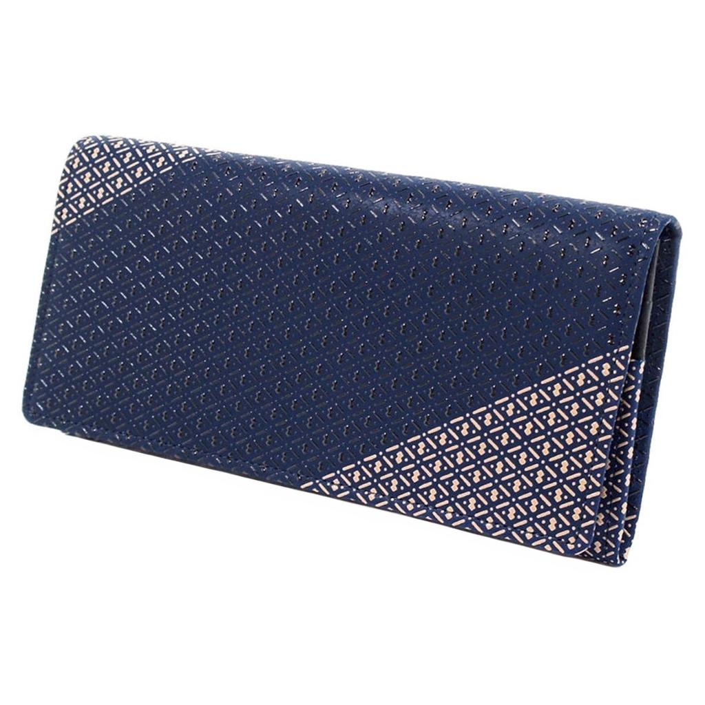 Длинный кошелек Inden с тыквой для монет, темно-синий x черный и белый лак 8215 [Indenya], кошелек, оленья кожа, Ihori, узор,