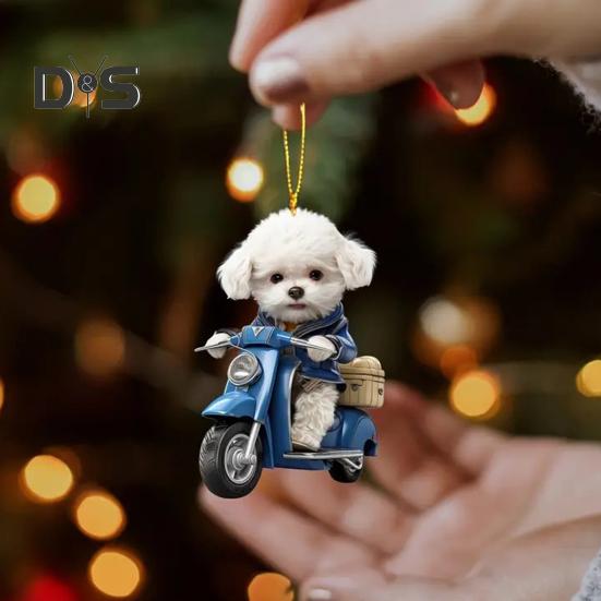Эта стильная подвеска с изображением котенка или щенка, едущего на мотоцикле, добавит современный и изысканный штрих к вашему праздничному оформлению.. Изготовленное из высококачественного акрилового материала, это легкое и прочное украшение обеспечит вам долгое удовольствие.