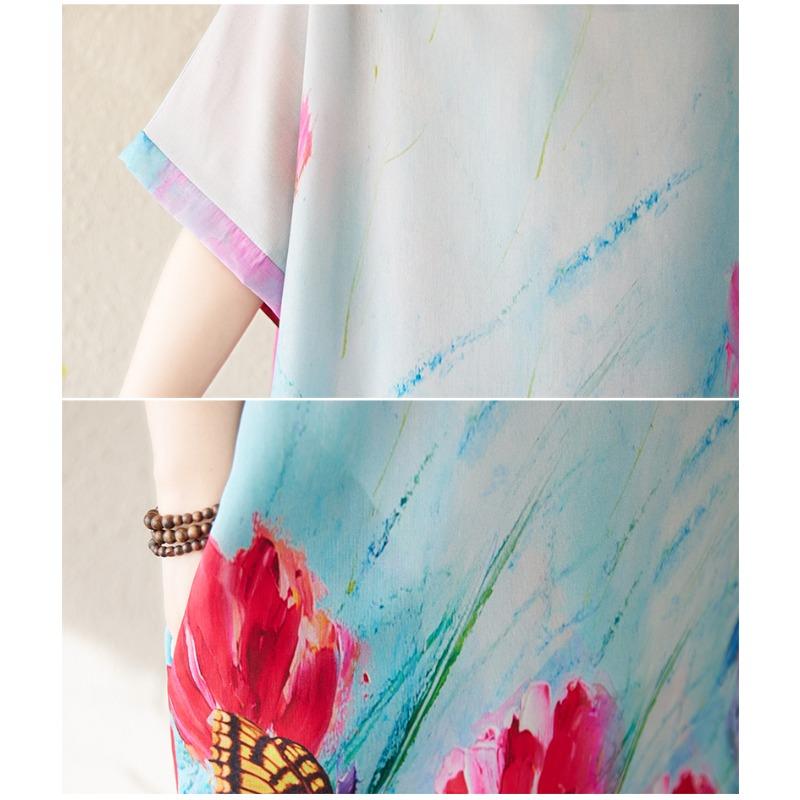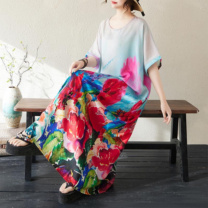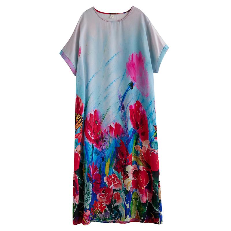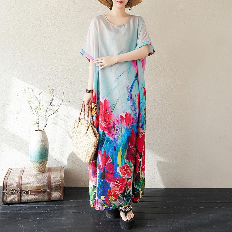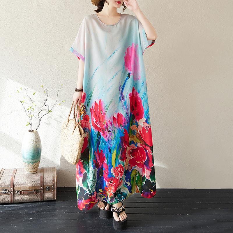 DIMANAF 2025 Летнее Женское Платье Большого Размера Пляжное Базовое Повседневное Платье Свободное Винтажное С Цветочным Принтом Длинное Платье